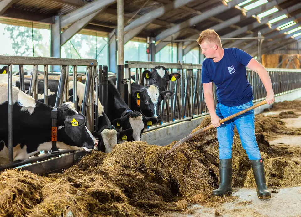Passie voor de agrosector heeft Rik Cazemier (22) al op jonge leeftijd. Het is dan ook vanzelfsprekend dat hij de mbo-opleiding Veehouderij afrondt om vervolgens aan de slag te gaan daar waar hij het liefste is; bij de koeien. Vrijwel iedere dag is hij wel op het erf van één van de drie boerderijen te vinden waar hij werkt als allround medewerker veehouderij.